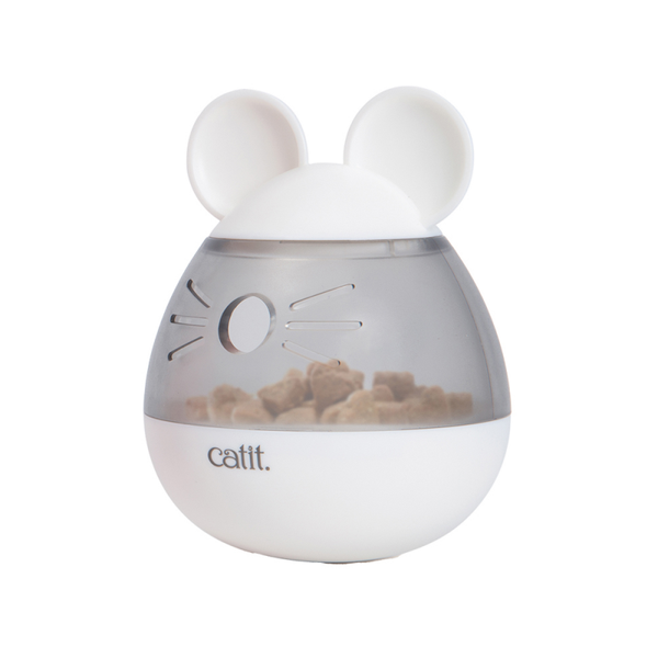 Deze leuke snackdispenser is de ultieme speelmaat voor jouw kat. Naast dat de muisvormige dispenser leuk is om mee te spelen, geeft hij ook langzaam snoepjes of brokjes af. Hierdoor is je kat actief bezig met zijn eten vergaren, wat het jachtinstinct stimuleert. Daarnaast is het goed voor katten die te snel eten. De muis wiebelt leuk heen en weer en recht zichzelf weer. Je kat kan de snoepjes wel ruiken, en het is mogelijk om de moeilijkheidsgraad aan te passen door de schuiver. Deze snackdispenser heeft een afmeting van ca. 8 x 8 x 10 centimeter en is geschikt voor snoepjes en brokjes met een maximale diameter van 9 mm.