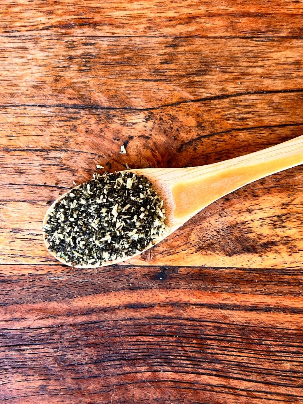 Maaltijdtopper met frisse adem * 100% van menselijke kwaliteit * Gemaakt van ascophyllum nodosum, kokos en peterselie * Ideaal voor BARF-diëten of als maaltijdtopper * Vermindert slechte adem - geen stinkende kusjes meer * Kan bijdragen aan de dagelijkse mondhygiëne * Remt de vorming van tandsteen en tandplak * Natuurlijke bron van jodium, draagt bij tot een normaal energiemetabolisme * Rijk aan mineralen, aminozuren, vitaminen en sporenelementen * Elke pot is gevuld met hopen L ♥ VE Op een droge en koele plaats bewaren Geldigheid: 18 maanden VOEDINGSGIDS: *Voor katten: voeg 1 snuifje per dag toe aan de dagelijkse maaltijden. *Voor honden tot 10 kg — Voeg 1/2 theelepel per dag toe aan de dagelijkse maaltijden.