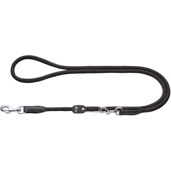 Als u vaak wilt dat u de lengte van uw hondenriem flexibeler en specifieker kunt aanpassen, dan is de FREESTYLE Vario-leiband de oplossing. De originele lijn in touw-look kan op elke gewenste lengte worden ingesteld. De FREESTYLE Vario-leiband heeft een karabijnhaak aan elk uiteinde. Eén karabijnhaak wordt op de normale manier aan de halsband van uw hond bevestigd, terwijl de andere aan de traploos verstelbare, speciale schuifknop wordt gehaakt. De handlus vormt zich als het ware automatisch en de riem heeft precies de juiste lengte; hij is zo lang of kort als u zelf aangeeft. De buitenkant van de FREESTYLE Vario-leiband is aangenaam zacht en antislip. De kern van iets steviger polyamide maakt de leiband zo slijtvast als uw dagelijks leven met uw hond vereist. De riem is weerbestendig, zodat regen, zon, kou of hitte er geen invloed op hebben tijdens uw dagelijkse wandeling.
